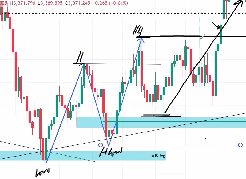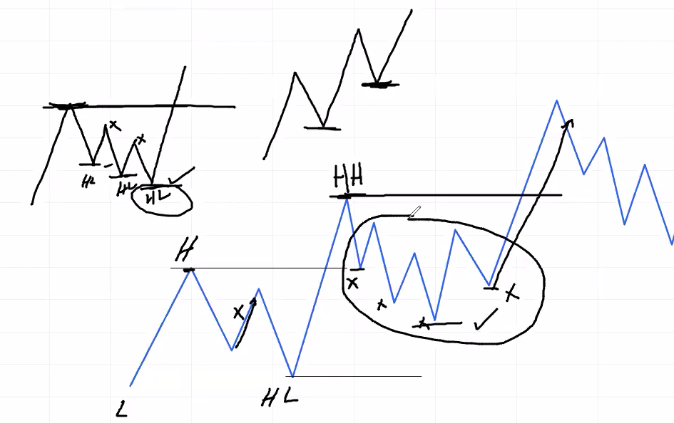 Higher low is marked after higher high breaks, its also called external high. Deepest point after higher high breaks, Its the extreme Point of Interest. Its marking should be perfect