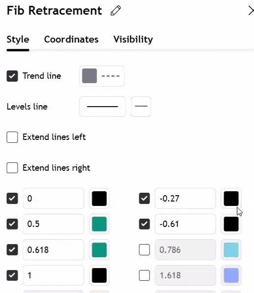 use below settings for fib with percentiles as levels. this setting will be below fib settings.