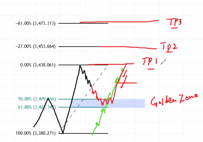 in this example fvg was just below the golden zone. price first tap fvg and respected it but then it came back to golden zone and from there we get a momentum sell candle. take trade after that and sl above golden zone. this typical trade hit all tps. When fvg matches golden zone then its really GOLDEN