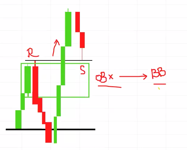 Order block becomes breaker block if price comes back to test it