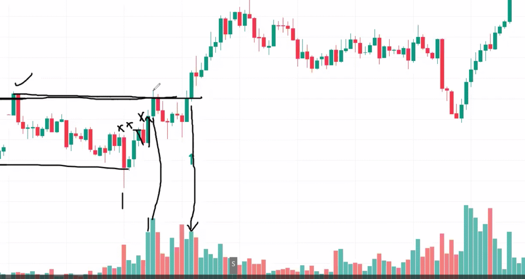 price hitting supply again and again and a breakout happens with low volume as compared to all the volumes of supply area candles.